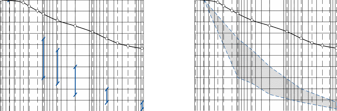 Material specifications can be plotted as either specification bars, or as an envelope: