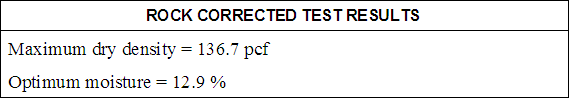 When an oversize correction is applied, the program can be configured to report uncorrected maximum dry density/optimum moisture values in addition to the corrected test results. This selection affects both the data summary report and the chart report. For example, the following figures demonstrate the effect of selecting and unselecting this option on the PRGEOSYS chart report: