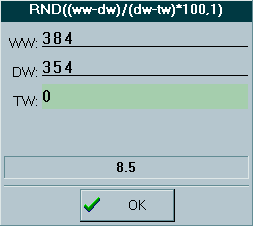 After completing the WW (wet weight + tare), DW (dry weight + tare) and TW (tare weight) fields the user clicks on the OK button and LOGDRAFT fills in the Water Content data entry field with the calculated moisture content.