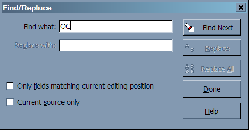 2. Choose Project > Find Text. This displays the Find/Replace dialog (shown below).