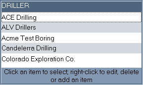 The figure below shows a sample "Driller" selection list: