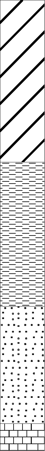 In situations where two dissimilar materials were encountered at the same depth, LOGDRAFT can split the stratigraphy column in half and show one material's patterns on the left half of the column and the second material's patterns on the right half. A sample split stratigraphy is shown the image below: