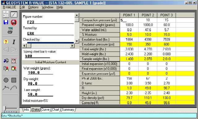 The GEOSYSTEM Resistance R-value (R-VALUE) software is designed to reduce laboratory data from a resistance R-value and/or expansion pressure test (ASTM D2844, AASHTO T 190, California Test CT 301 and Idaho T-8).